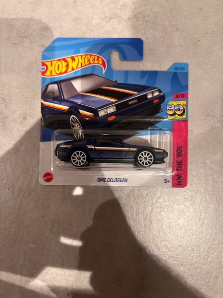 Hot Wheels bilmodell av en DMC DeLorean. Denna modell är en del av 'HW: The 80s' serien och har nummer 101/250.