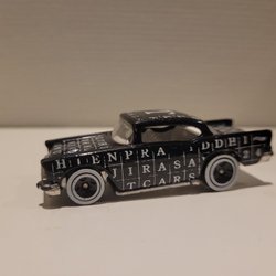 Leksaksbil i form av en Volvo V70. Bilen är grön och har detaljer som strålkastare och bakljus. Den har rullande hjul. 1/72(?). Saknar ena railset på taket