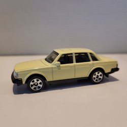 Leksaksbil i gul färg med röd takräcke. Bilen har svarta däck och en svart bottenplatta med texten ”3246 EA” ingraverad.