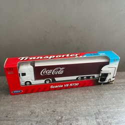 Denna modellbil är en detaljerad replika av en Volkswagen Bubbla, prydd med klassiska Coca-Cola-logotyper och designelement. Bilen är röd med vita detaljer och har texten ”Drink Coca-Cola” och ”ADV. & SALES DIVISION Coca-Cola BOTTLING CO.” på sidorna. Den är förpackad i en genomskinlig displaylåda med Coca-Cola-märkning.