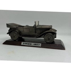 Modellbil av en Volvo 164 i mörkgrön färg. Bilen är monterad på en svart bas med texten "Volvo" och "Volvo 164" i silver. Interiören är röd.