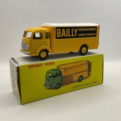 En blå modellbil av en Renault. Bilen har vita ränder och öppningsbara dörrar och bagagelucka.