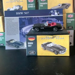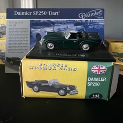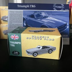 Morgan plus 8 i skala 1/43+ manual. Bilen har en mycket detaljerad interiör och exteriör. Den är tillverkad i metall och bottenplattan i plast. Bilen är i nyskick och kartongen är lika bra.