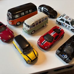 Ett sortiment av leksaksbilar i olika modeller och färger. Perfekt för samlare eller barn som älskar att leka med bilar.
