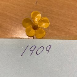 Gammal majblomma från årtal 1909. Några blad saknas. Ett blad dit limmat.