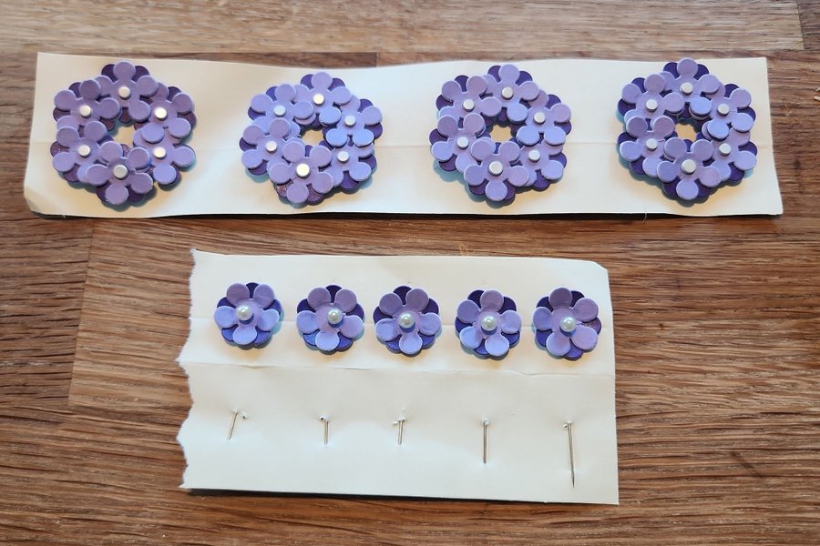 Majblommor från 2024. Fyra stora kransar och fem små klassiska majblommor.