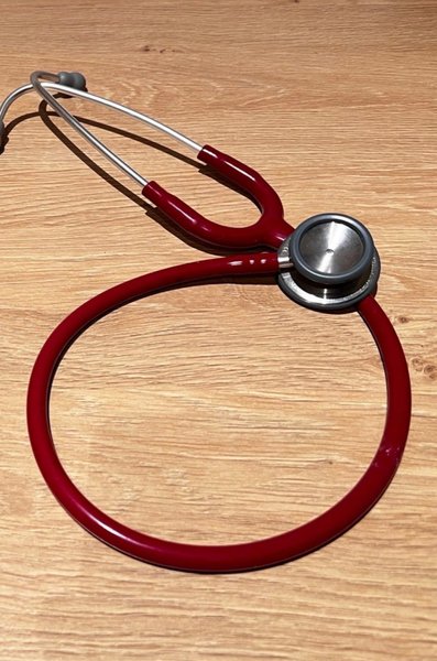Stetoskop i rød/bordeaux. Fejler intet.