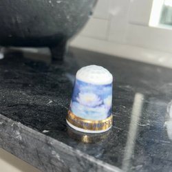 Detta är en keramikburk i fajansstil, möjligen från Moustiers-Sainte-Marie i Provence, Frankrike. Den är dekorerad med ett blått mönster och texten ”S. Aceto” som troligen indikerar att den är avsedd för vinäger (Aceto är italienska för vinäger). Fajans är en typ av glaserat lergods som var populärt i Frankrike under 1600- och 1700-talen. Höjd inklusive lock ca 27 cm.