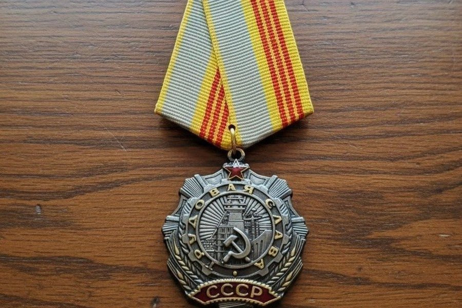 Säljer en sovjetisk utmärkelse, Orden av Arbetets Ära III Klass Medalj. Detta är en civil motsvarighet till den militära utmärkelsen Order of Glory och delades ut för betydande prestationer inom arbete och industri