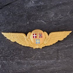 Kavaj till SAS-pilot från 90-talet. Ett streck på ärmarna för styrman, komplett med guldvingen.