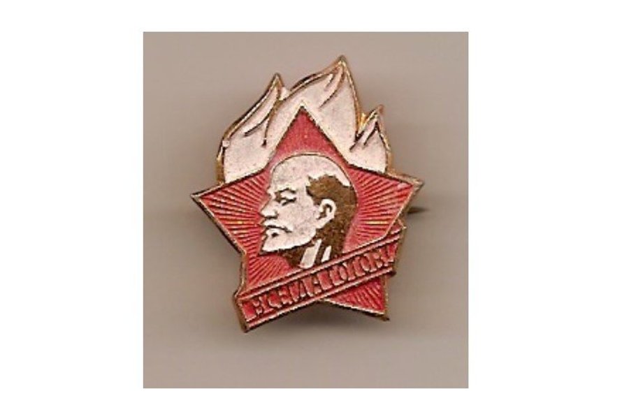 Medlemsmärke, variant med vit flamma som tillverkades av Leningrads myntverk 1970-1980tal.