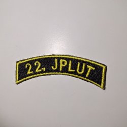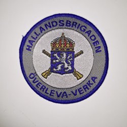 Rund tygmärke med texten "NORRINGARNA P6/Fo 14" runt en ljusblå cirkel. I mitten finns ett vapen med en röd grip och en krona ovanpå, samt två korslagda svärd under.