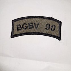 Rund tygmärke med texten "KVILLINGE HEMVÄRN" i vitt på en blå kant. I mitten finns en röd cirkel med en gul drake och vita symboler.