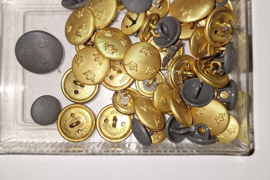 Grå plast, guldfärgade