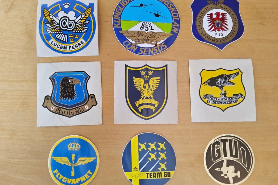 Diverse klisterdekaler från flygvapnet. Mest från flygskolan på F5, ett GTU 1 på F16 Uppsala samt 2:a div "Martin blå" på F13 Norrköping.