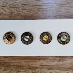 Fem Soldatprovsmärken från P6/FO14 från åren 1977, 1978/79, 1979/80, 1980/81 och 1981/82, oanvända!