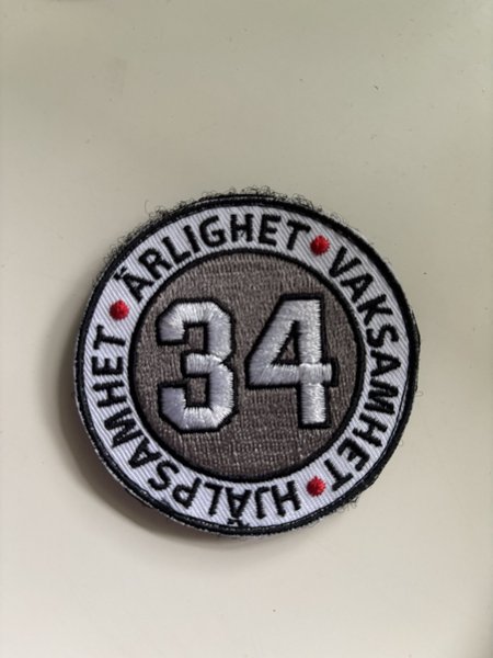 snyggt märke med kardborre och är tvådelad. dvs både märke och fästplatta.