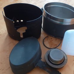 Del av ett soldatkök, fräsch inuti och grönmålad, fyller sin funktion och är i bra skick förutom lite färgskav av minimal användning