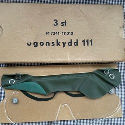 En förpackning ögonskydd 111 från det militära oanvända men förpackningen är lite sliten på sina ställen. En del i användning av skyddsmask m/51