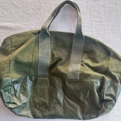 Grön väska, vet inte om det är lumpen/militär eller liknande, slitstarkt tyg