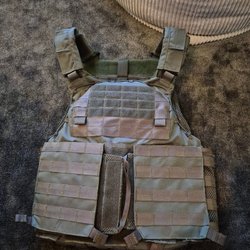 Fickväska i khaki med MOLLE-fästen på baksidan. Väskan har ett huvudfack med en mindre ficka inuti. Försluts med lock och kardborreband.