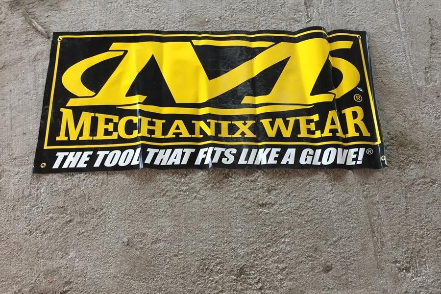 Mechanix Wear reklambanderoll med metallöglor, 120x56 cm. Utmärkt prydnad till garageväggen!
