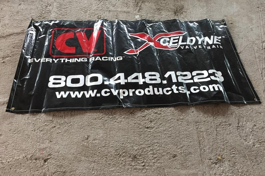 CV-products reklambanderoll med metallöglor, 180x90 cm. Utmärkt prydnad till garageväggen!