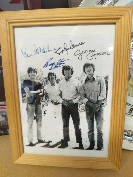 Kopia på foto med autografer med olika pennor.ej orginal autografer.men dekorativ mont i träram