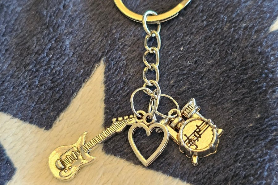En söt liten nyckelring med musikinstrument.