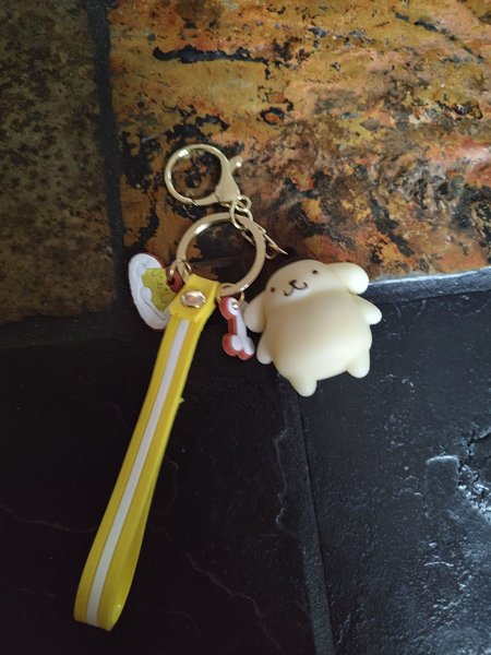 Sanrio Söt Pompompurin nyckelring med flera hängen. Perfekt för väskan eller nyckelknippan.