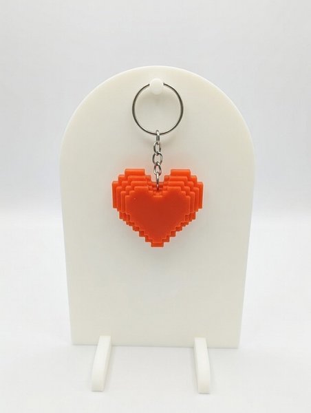 Säljer en 3D-printad nyckelring i form av ett klassiskt pixelhjärta