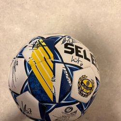 En signerad fotboll med Mjällby AIF-tema. Bollen är av märket Select och storlek 5. Perfekt för samlare eller supportrar! Signerade av mjällby spelare ! 2024