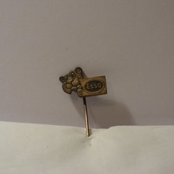 En FIB nål med en kedja runt om och en fackla på toppen.