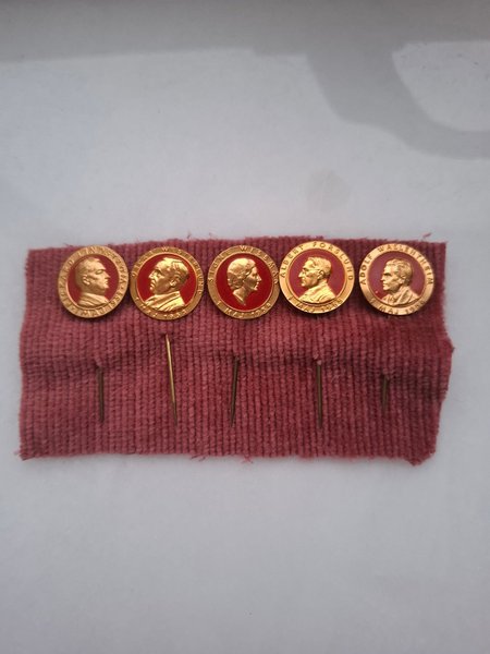 Samling av nålmedaljer från 1 Maj.