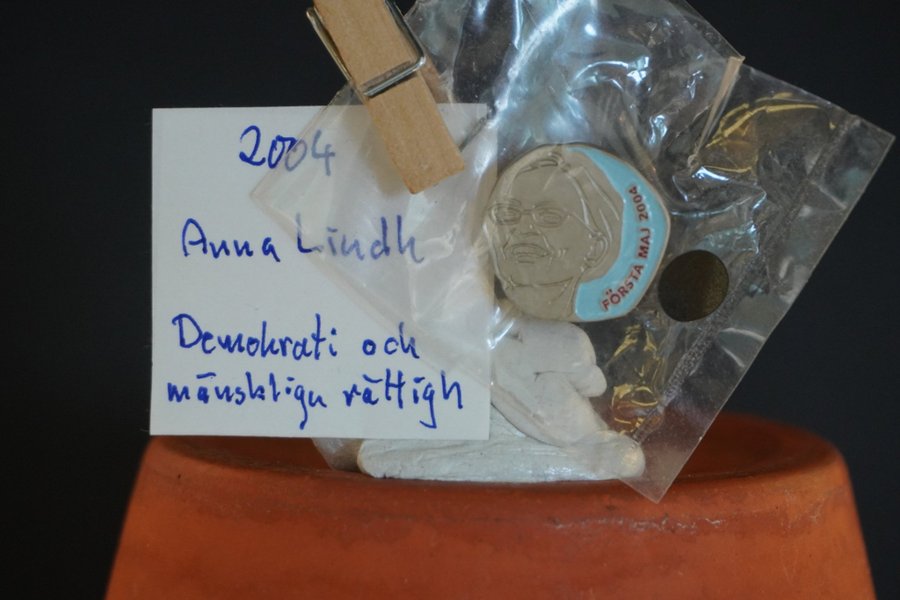 1 maj nål, årtal enligt bild 2004 Anna Lindh Demokrati och mänskliga rättigheter