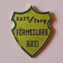 Ett för mig okänt emaljerat nålmärke i guldfärgad metall. Bokstäverna A.S.F. inom tre ringar, där den mittersta bildas av ett ål- eller ormliknande djur som verkar bita sig själv i stjärten.