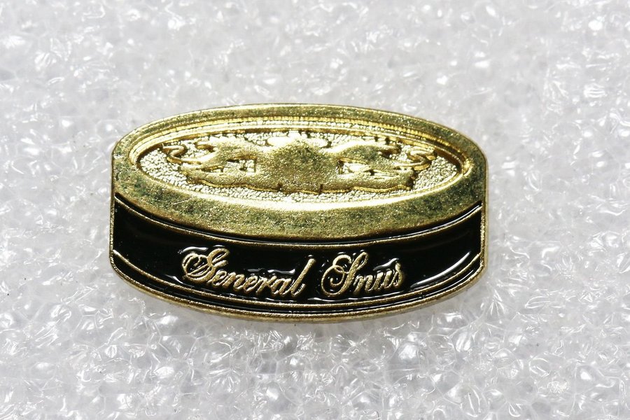 General Snus -pins med butterfly clutch/pinslås enl. bild. Dels emaljerat.