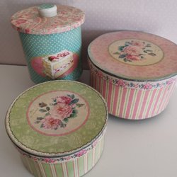 Superfina plåtburkar och en styck Matlåda för sentimentala samlare. Orginal Fazer "annanaskarameller" från Finland. Coca cola matlåda och en övrig möstrad rund burk.