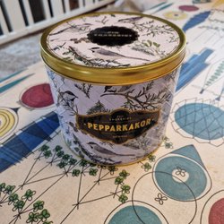 En dekorativ plåtburk för pepparkakor.