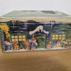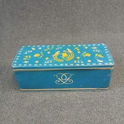 Äldre plåtburk i skapligt skick för sin ålder. Saknas en knopp/fot under burken. Något för samlaren. Frakten gäller inom Sverige.