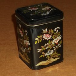 Plåtburk svart och guld färg med röda fartyg Made in Great Britain.