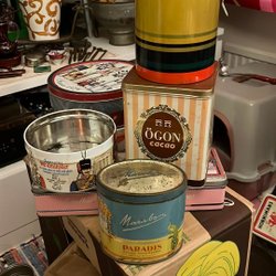 5 st plåtburkar av olika slag, Royal Canin, Nivea, theburk och godisburkar
