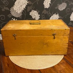 Låda med slitage. Mönster med blommor. Höjd ca 9 cm och 22 cm x 23,5 cm.