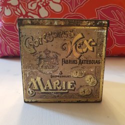Riktigt gammal burk från Göteborgs Kexfabrik. Asken är i plåt.