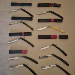Två rakknivar med svarta handtag. Den ena kniven är lite trasig längst upp på skaftet ytterst lite rostfri på kanten. Dom har nr.7 och 24 tillverkade i Eskilstuna.