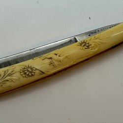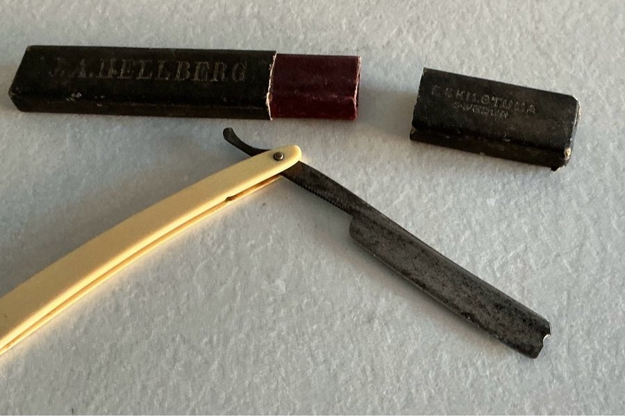Rakkniv från J.A. Hellberg, tillverkad i Eskilstuna, Sverige. Handtag i benvit färg.