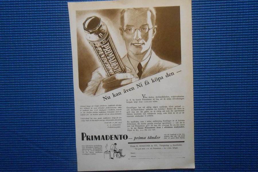 Annons Primadento firma E.Haglund & Co