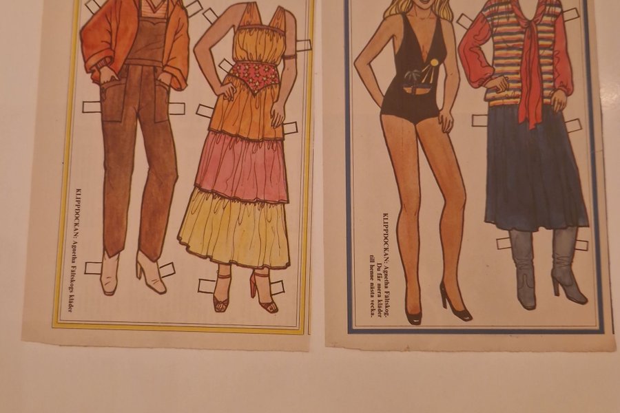 Två klippdockor med Agnetha Fältskog och hennes kläder. Klipp ut och skapa olika outfits.