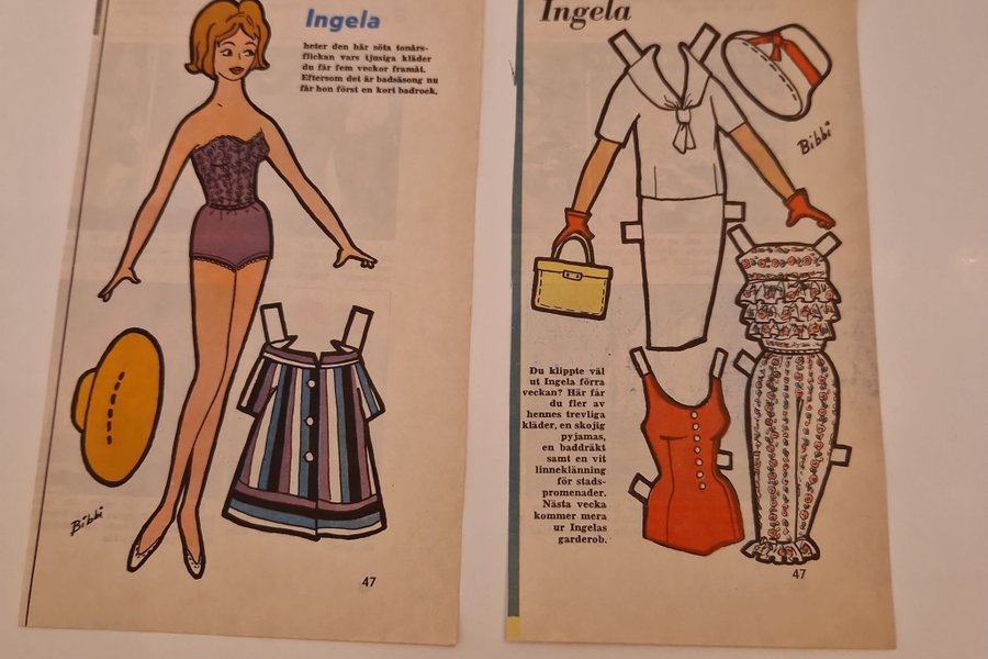 Klippdocka Ingela med kläder. Innehåller en baddräkt, pyjamas och en klänning.
