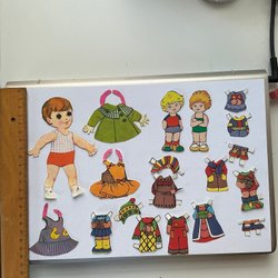 Klippdockor och tillhörande kläder i retrostil. Perfekt för pyssel och lek!
